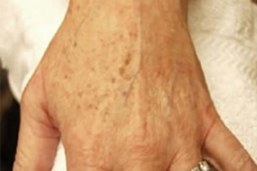 To decrease appearance of brown spots. 60-year-old female received Phototherapy to hands.