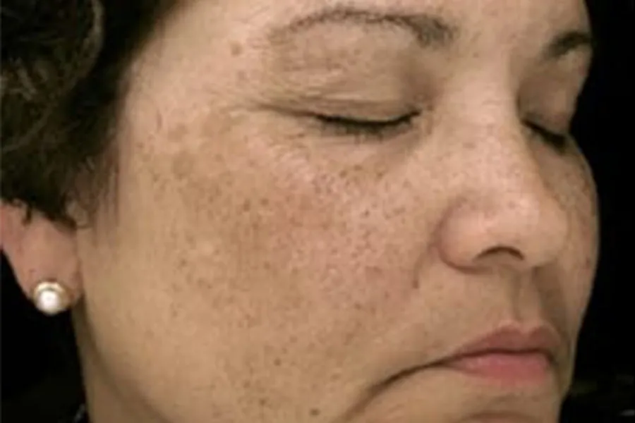 To brighten skin and decrease appearance of hyperpigmentation. 32-year-old female received 1 treatment with Forever Young Phototherapy and ProFractional® treatment for melasma (diffuse hyperpigmentation/darkening of the skin).